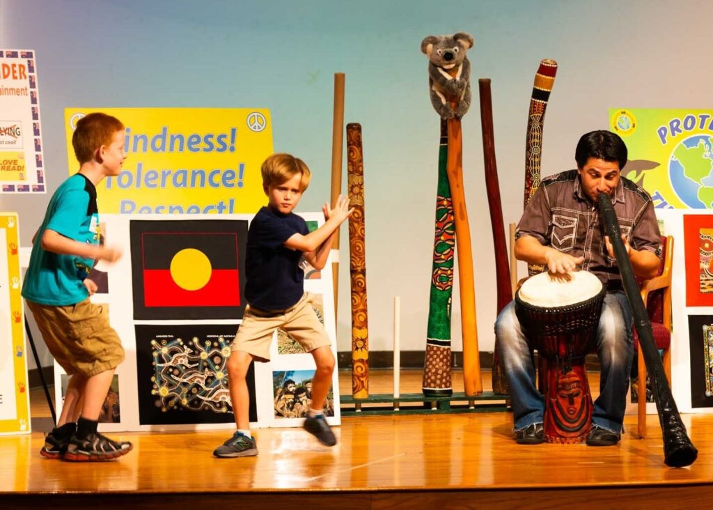 G’day! We perform exciting and interactive Australia-themed musical shows, workshops and concerts at libraries and other sites nationwide. Since 2003, we’ve presented 10,000+ programs for more than a million thrilled audience members!